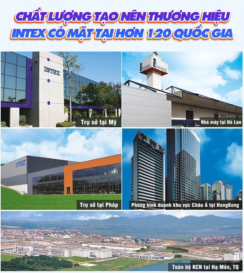 1. INTEX là thương hiệu của Mỹ - với hơn 50 năm nghiên cứu và phát triển, đi đầu Thế Giới về dòng hồ bơi khung kim loại, có mặt tại hơn 120 quốc gia trên Thế Giới!