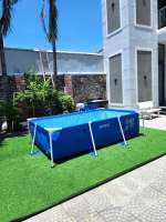 Bể bơi thương hiệu INTEX được chứng nhận và mua an toàn, bạt 3 lớp chắc chắn, chịu được nắng, chồng trầy xước, vật liệu PVC thân thiện với môi trường, an toàn, tốt cho sức khỏe. Bể bơi dễ lắp đặt không cần công cụ, cài đặt dễ dàng và nhanh chóng có thể thực hiện bằng tay. Ngoài ra bể còn tiết kiệm nước do có thể lắp đặt máy bơm để lọc nước và tái chế.