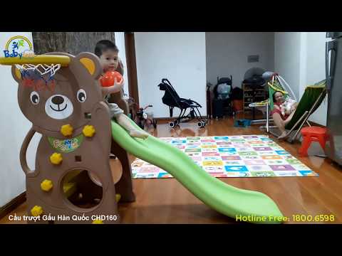 Cầu trượt Hàn Quốc gấu có ném bóng rổ CHD160