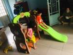 ✪ Cầu trượt thiết kế đa năng 4 trong 1 , bé vừa có thể chơi cầu trượt, vừa có thể chơi môn thể thao ném bóng rổ vui nhộn, vừa có thể chơi xích đu tuổi thơ, vừa chơi trò ú òa, trốn tìm, leo trèo thích hợp với gia đình có từ 1-3 bé, hoặc nhà trẻ, trường mầm non, ...