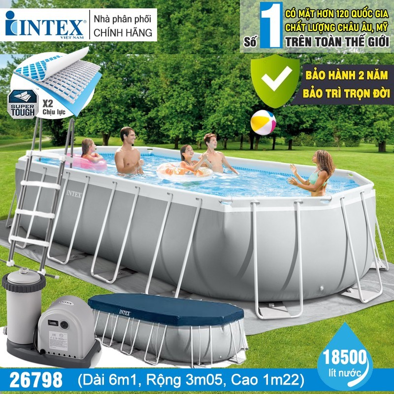 Bể bơi khung kim loại PREMIUM OVAL dài 6m1 INTEX 26798